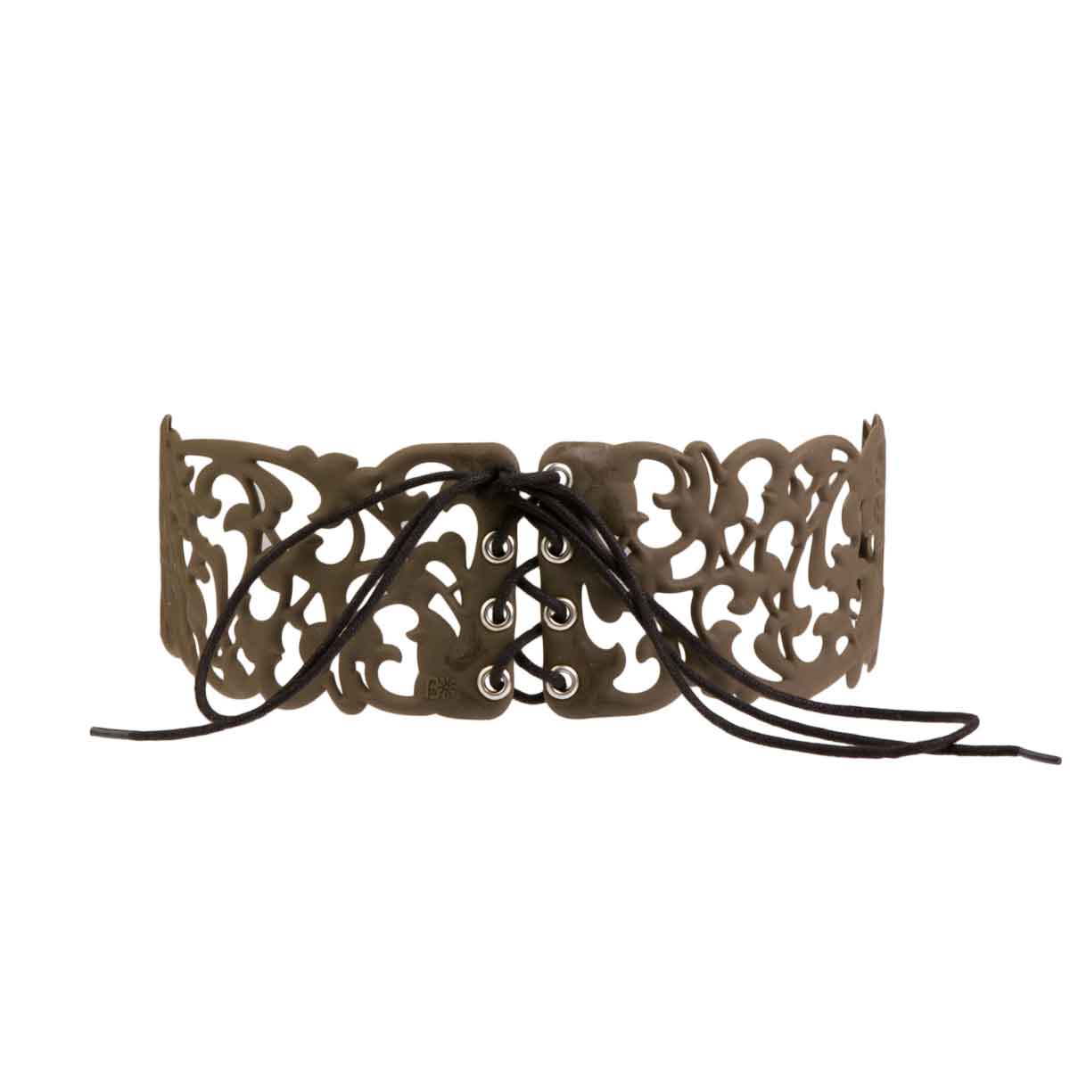 Une ceinture qui se lace comme un corset, une création au charme romantique grâce à son motif baroque. D’Angélique à Brigitte Bardot, héroïne ou icône, devenez celle que vous rêvez d’être.
